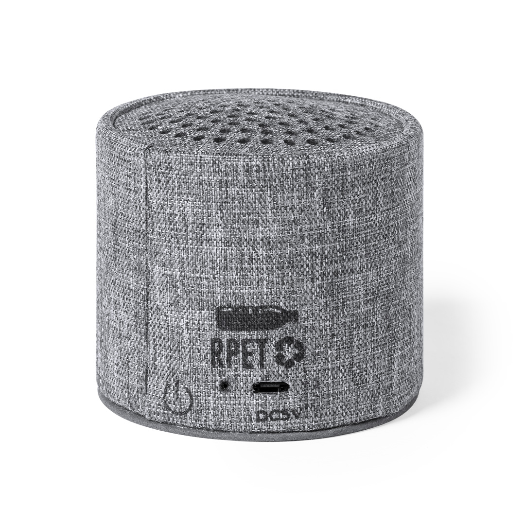 Compacto altavoz de línea nature y conexión Bluetooth® 5.0. Carcasa fabricada en poliéster RPET, elaborado a partir de plástico reciclado, para así fomentar la reutilización de residuos plásticos y ayudar a la sostenibilidad del planeta.3W de potencia, compatible con iOS y Android. Incluye cable de carga micro USB y base antideslizante. Presentado en atractiva caja de diseño eco. Con distintivo RPET sobre el artículo.