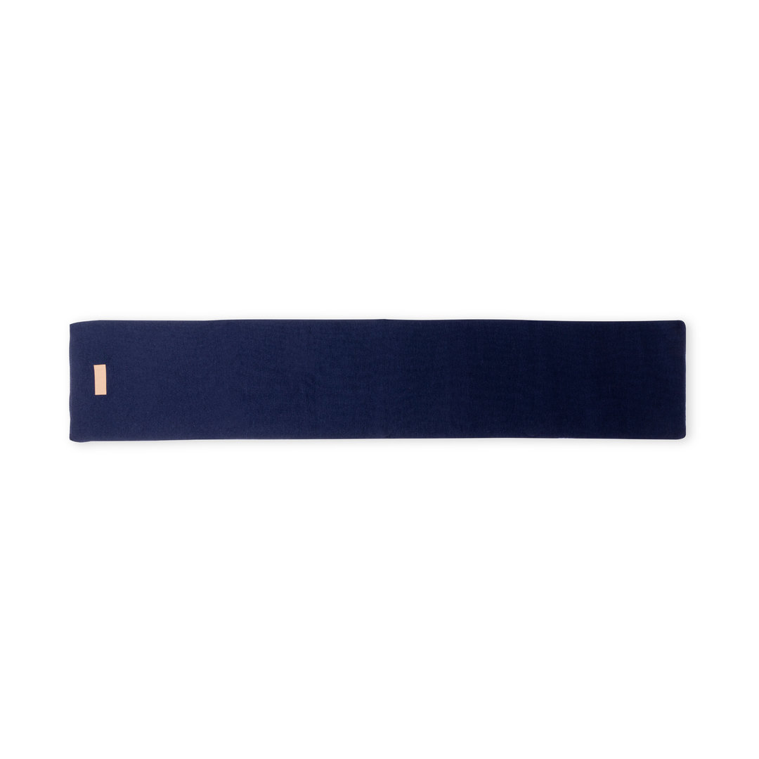 Bufanda unisex fabricada en material acrílico elástico. Con parche en polipiel cosido para marcaje y disponible en variada gama de colores.