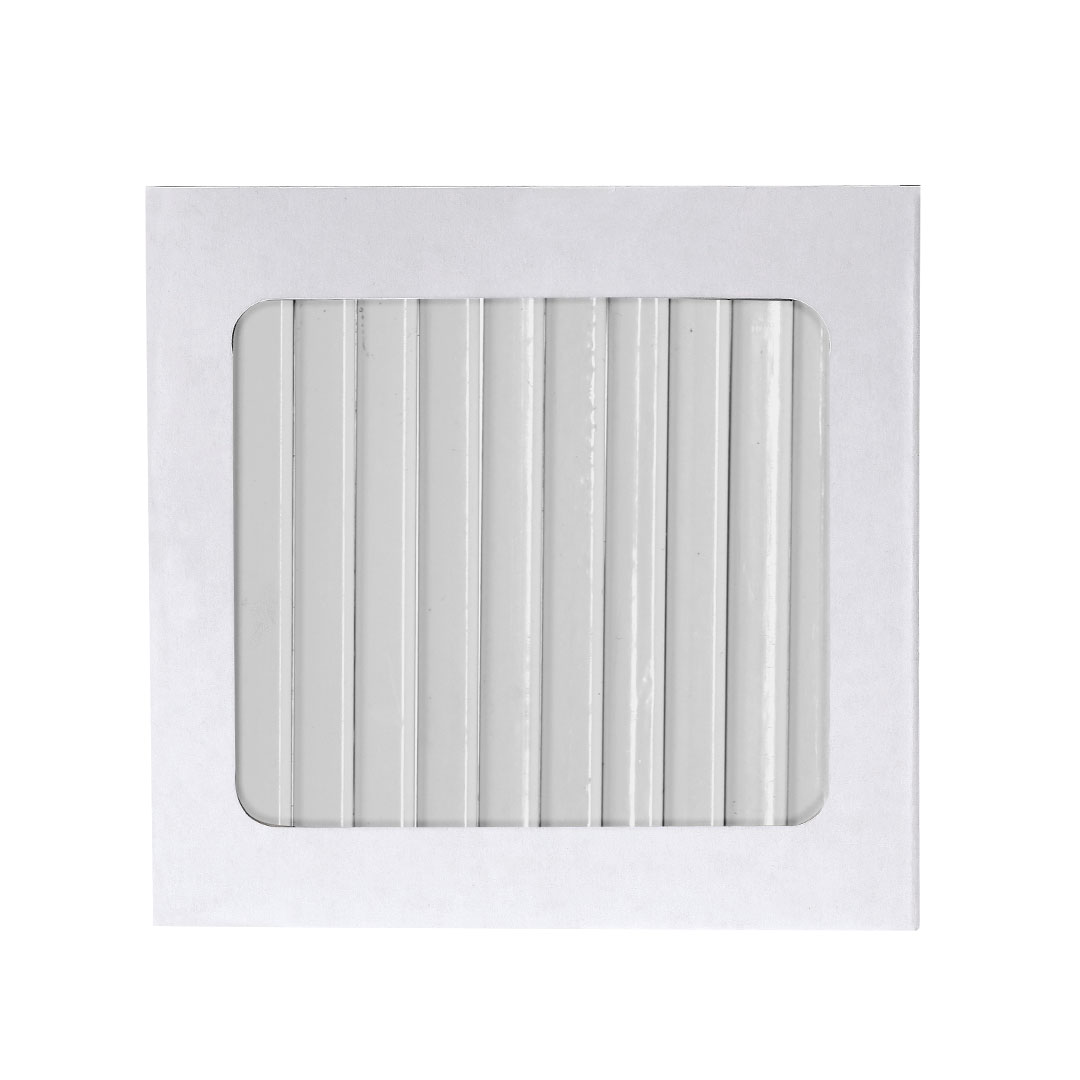 Cajas de12 lápices de madera acabado blanco, con cuerpo hexagonal y minas en varios colores. Presentados en estuche de cartón con cierre de solapa. Diseñado especialmente para grabado digital.