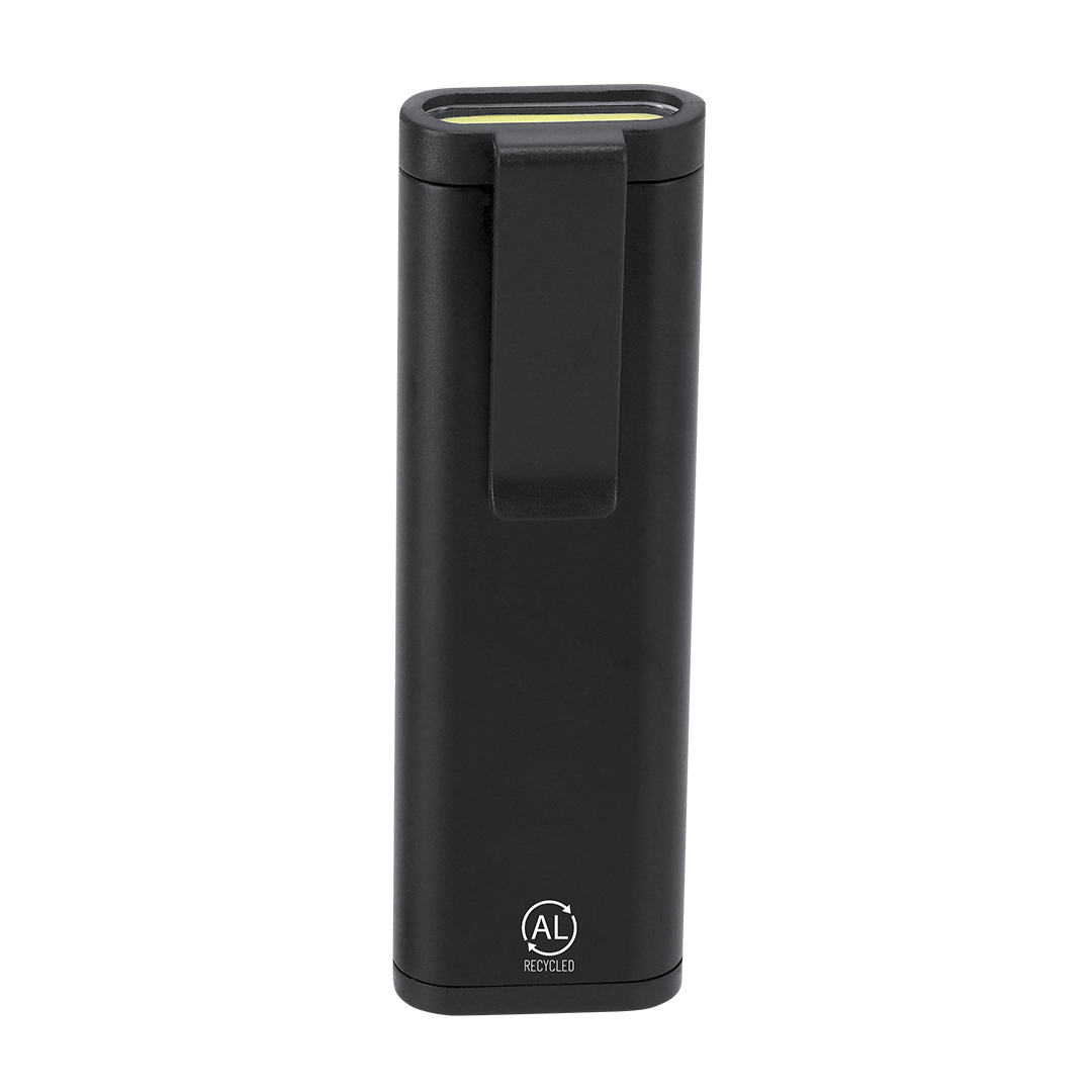 Set de herramientas fabricado en Aluminio Reciclado. Con función 2 en 1; estuche con forma de linterna de 4LEDs, con interior de almacenamiento de 6 herramientas; mango multifunción para cabezales compatibles de estrella y planos. Incluye práctico clip para llevarlo siempre contigo. Pilas a botón incluidas.