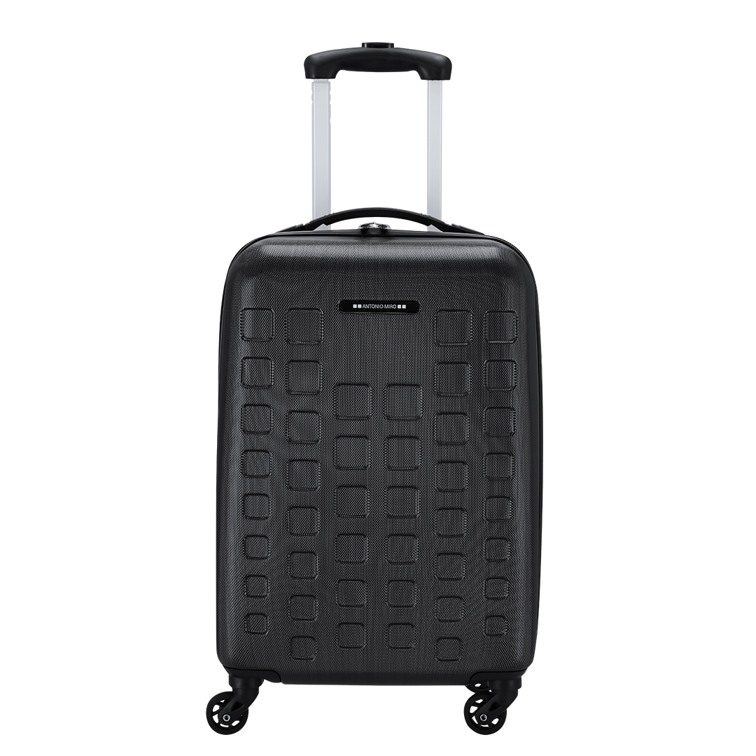 Trolley de Antonio Miró de 4 ruedas telescópicas en material ABS rígido de alta resistencia y elegante diseño de cuadros. Compartimento principal con cierre de cremallera de doble tirador y lateral con cierre de seguridad de combinación numérica. Con asa de mano de cómodo y suave tacto y logotipo de la marca en chapa exterior. Interior forrado, de doble compartimento con cintas elásticas de sujeción.